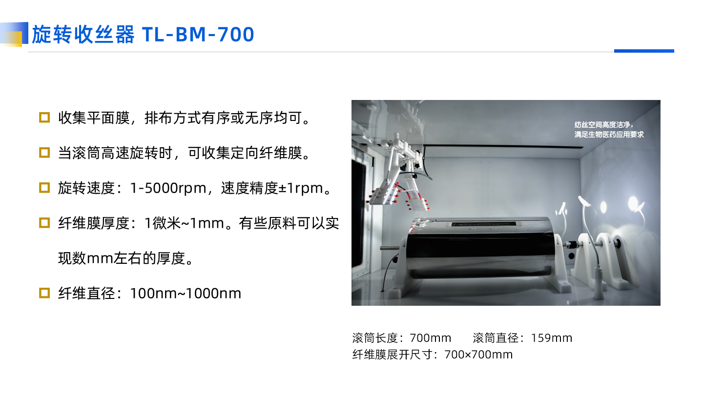量產(chǎn)型生物醫(yī)藥專用靜電紡絲機(jī) TL-BM-700 參數(shù)