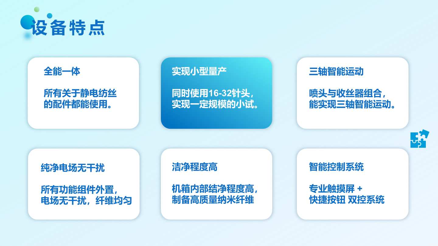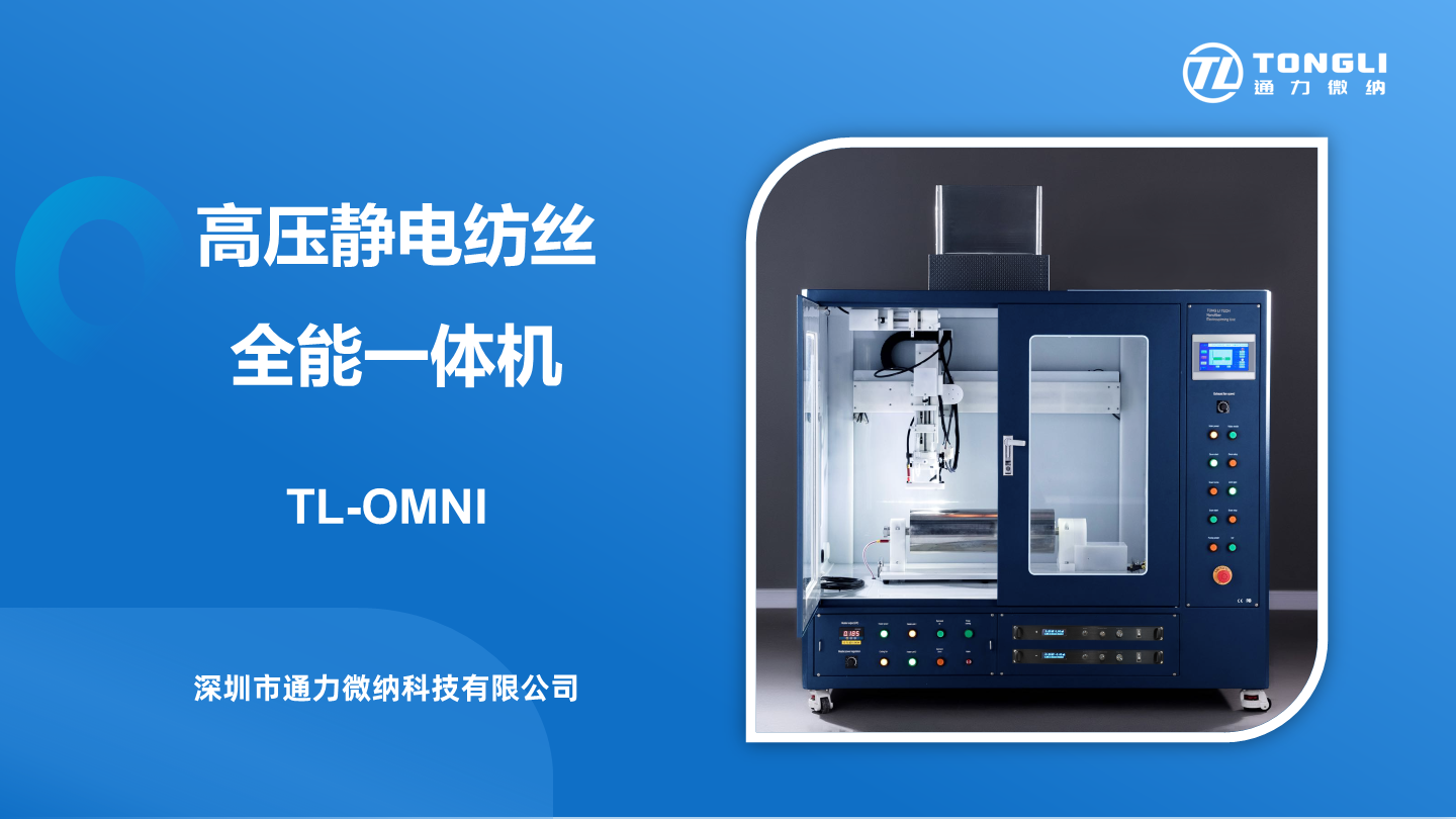 通力微納高壓靜電紡絲機TL-OMNI,ALL IN ONE EQUIPMENT,整機采用落地式設計,融合了我公司各型號實驗室設備的主要優點,配備了我公司全系列噴頭和收絲裝置,可滿足多種實驗需求,制備不同形態和特點的納米纖維。