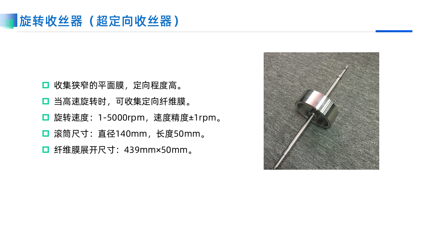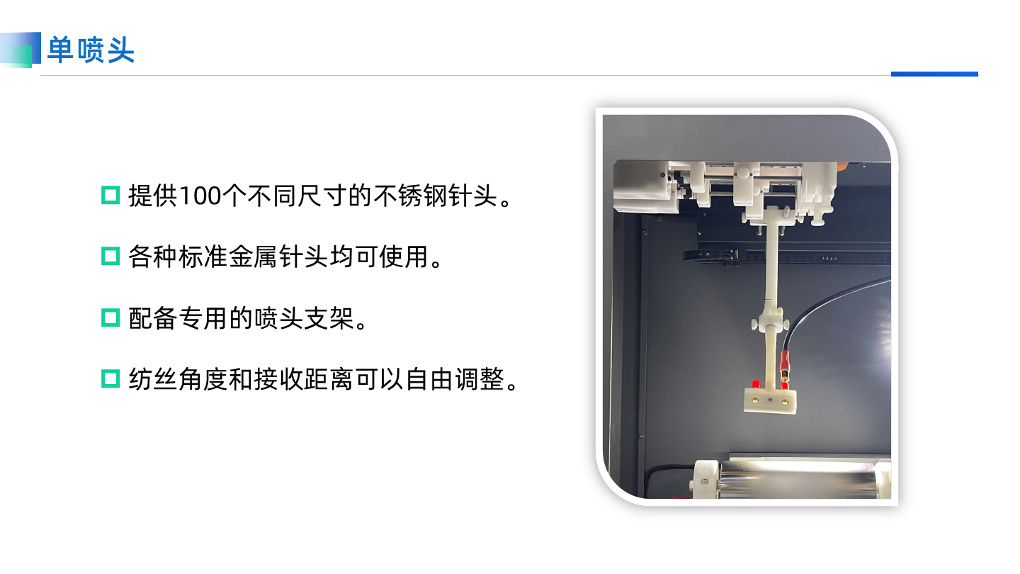 TL-01高壓靜電紡絲機是一款基礎但功能完備的設備,適用于教學和基礎紡絲實驗。它配備了完整的紡絲配件,包括五種不同類型的噴頭和收絲器,能夠實現多種實驗組合,為用戶提供豐富的選擇。