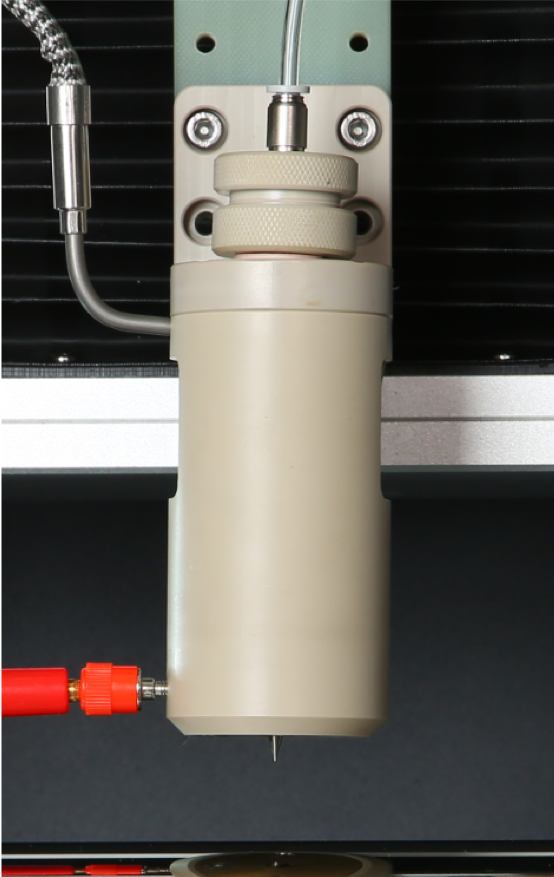 專用于靜電紡絲的高溫噴頭。溶液紡絲和熔融直寫均可以使用。噴頭端可加高壓。加熱溫度150℃。