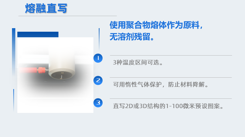 -高壓熔融直寫:最高可加熱到400℃;可實現10-45μm的單根納米纖維直寫